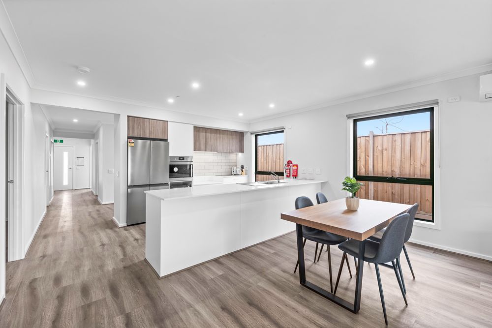 The kitchen is positioned to connect seamlessly with the open-plan living and dining area, making the home feel spacious and natural to move through. The kitchen includes all essential fixtures: cooktop with rangehood, built-in oven, sink with tap, and dishwasher. Power points and controls are positioned at consistent, accessible heights to make everyday use straightforward and simple.