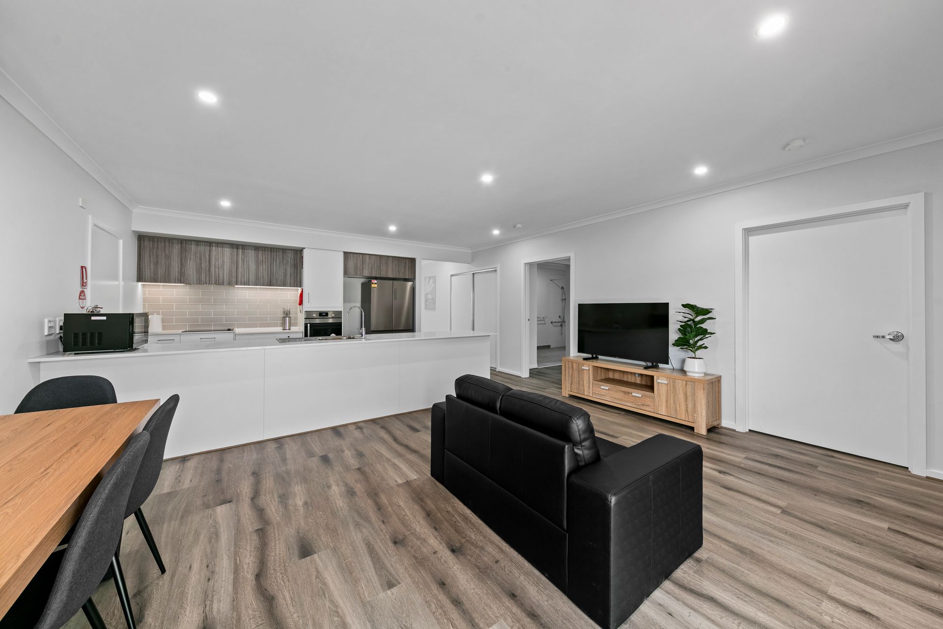 - Open Plan Kitchen, Dining & Living – Spacious layout with accessible appliances and ample circulation space